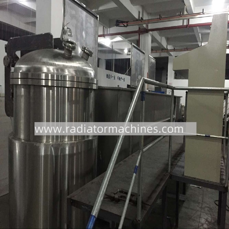 maszyna do zaciskania zbiorników z tworzywa sztucznego, piec do lutowania grzejników aluminiowych, maszyna do badania szczelności grzejników aluminiowych,